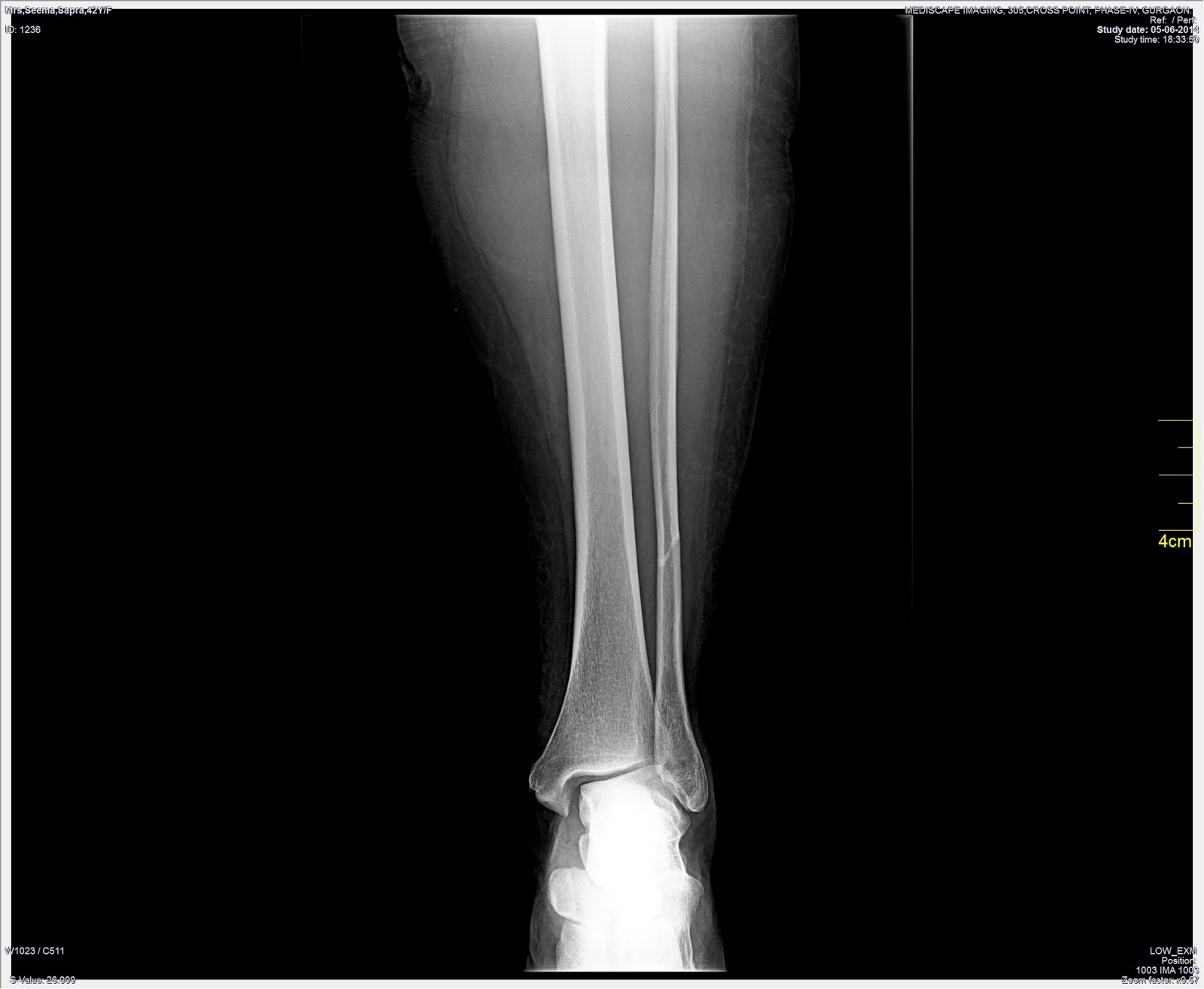 Xrays dated 5 June 2014 taken right after the fracture showing no ankle injury but only a fibula fracture and the opinion of three doctors including a radiologist and 2 orthopedics (Dr Shailza Aggarwal, and Dr Fahad and Dr Sandeep Chauhan) that there was no ankle injury and that the fibula fracture did not require surgery and would heal in a cast.