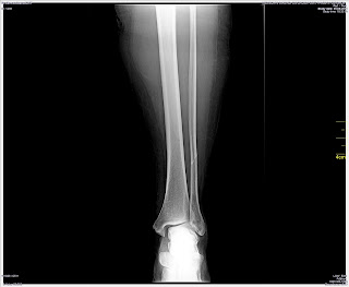 Xrays dated 9 June 2014 taken after the ankle was twisted which show a dislocated ankle.